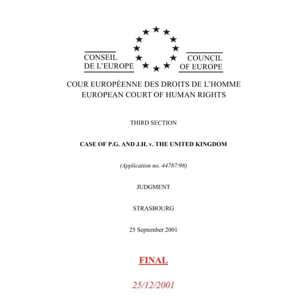 Në cështjen P.G dhe J.H kunder Mbretërise së Bashkuar, GJEDNJ konstatoi se: