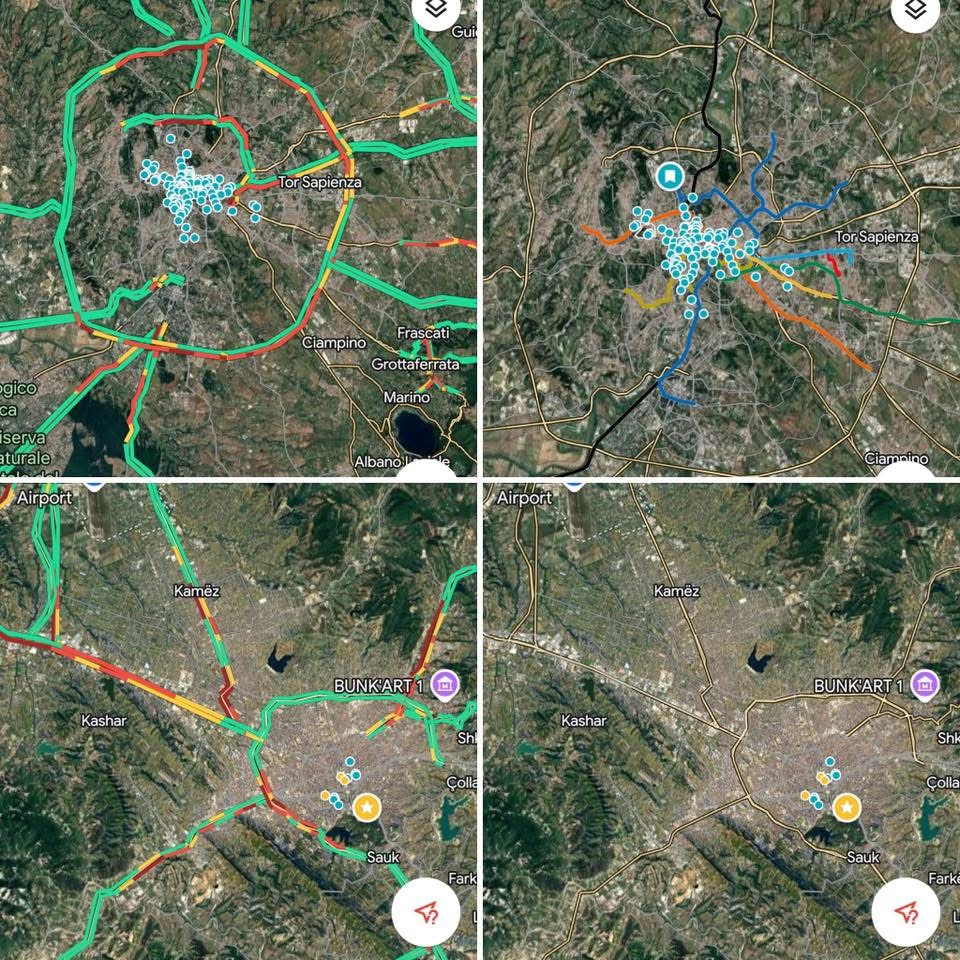 Një nga keqkuptimet më të mëdha në debatin publik është leximi i trafikut përmes Google Maps. Ngjyra e kuqe tregon dendësinë e përdoruesve automobilistikë, jo lëvizjen reale të popullsisë. Në qytete si Roma, një pjesë shumë e madhe e qytetarëve lëviz me metro, tram dhe autobusë në korsi të dedikuara. Transporti publik është i ndarë nga trafiku rrugor dhe funksionon si sistem paralel.