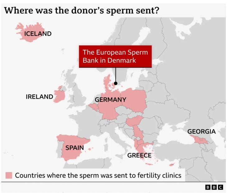 Hetimi është kryer nga 14 transmetues publikë europianë, mes tyre BBC, dhe ka zbuluar se sperma e dhuruesit është shpërndarë në 67 klinika fertiliteti në vende si Danimarka, Belgjika, Spanja, Gjermania, Greqia, Polonia, Irlanda, Maqedonia e Veriut, Serbia, Hungaria, Gjeorgjia, Islanda, Qiproja dhe Shqipëria.