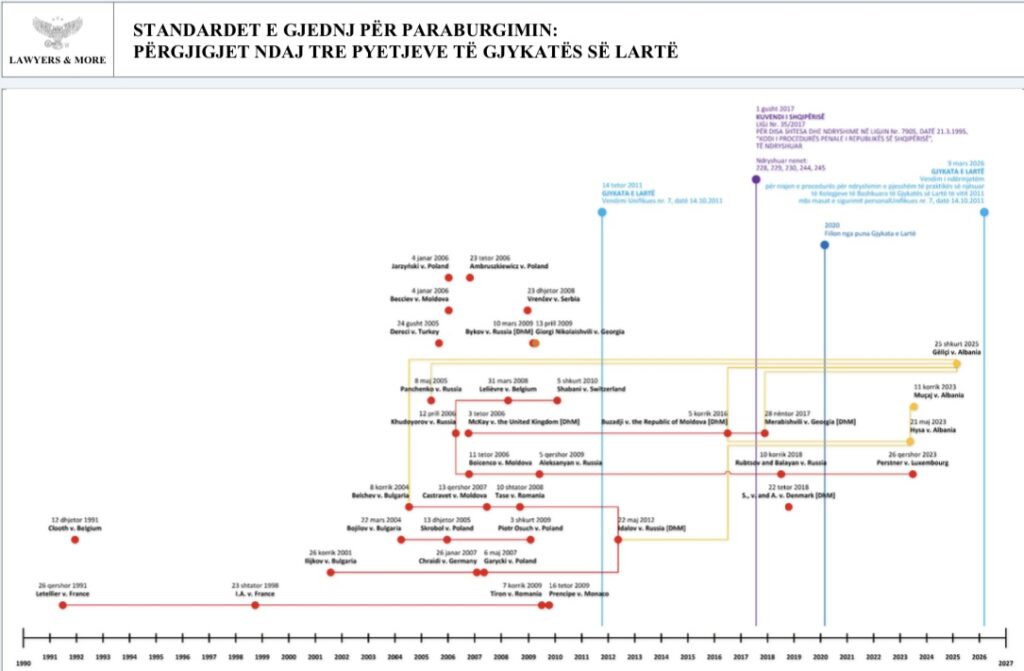 GJEDNJ ka rreth 20 vite që përmes një jurisprudence të konsoliduar i ka dhënë përgjigje këtyre tre pyetjeve të GJL. Ndërkohë, avokatët kanë të paktën 15 vite që i citojnë këto përgjigje në ankimet, rekurset dhe kërkesat e tyre, por sistemi gjyqësor i ka shpërfillur ato sistematikisht.